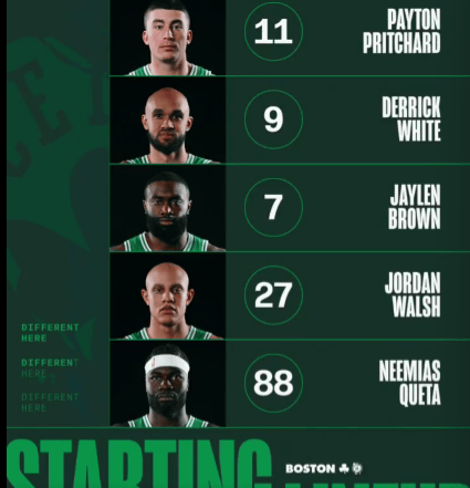 賽前凱爾特人更新官方社媒,公布了今日比賽的首發(fā)陣容。