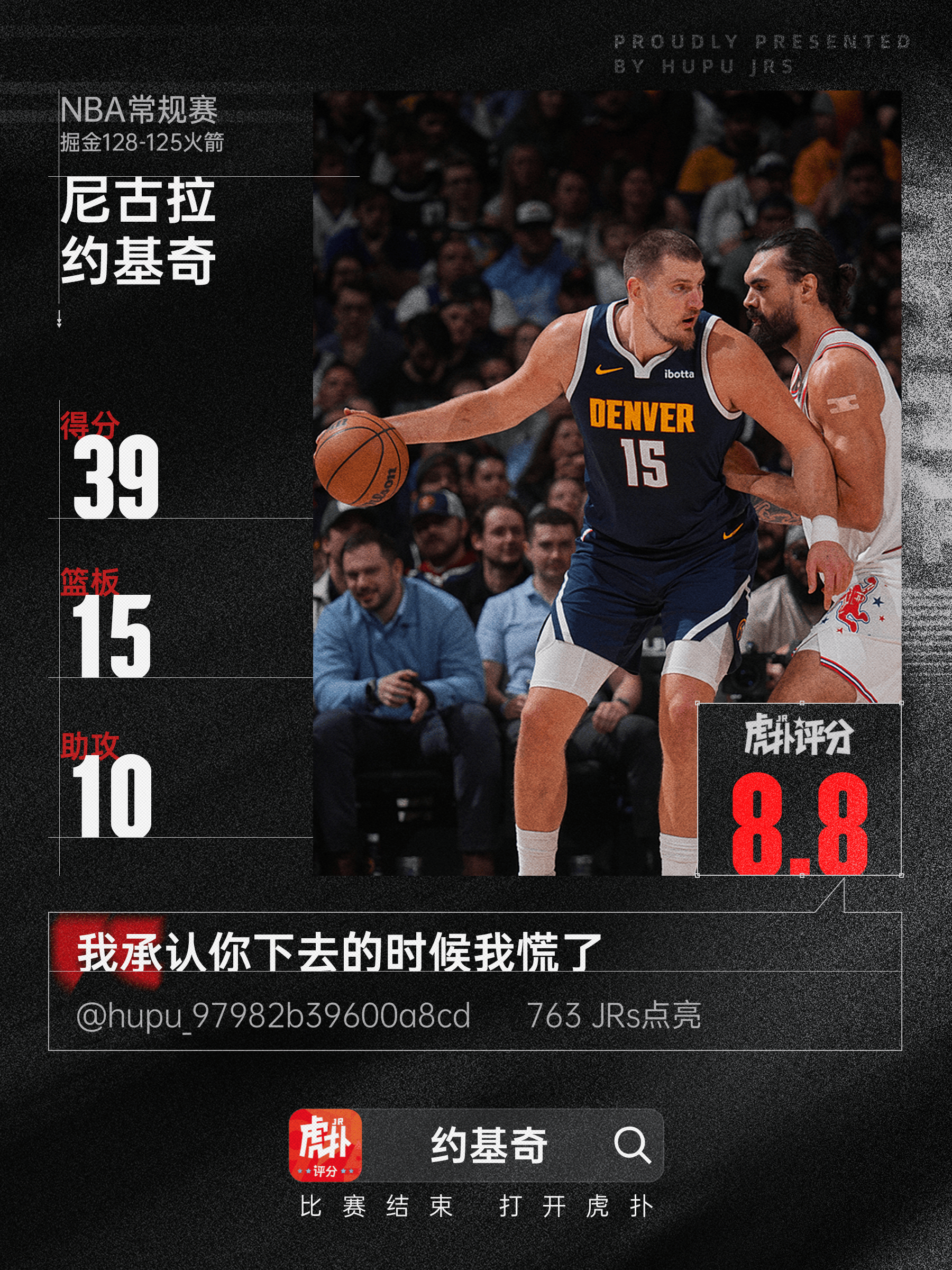 本場比賽,下分掘金球員尼古拉-約基奇出戰(zhàn)42分鐘,籃板27投13中,助攻其中三分球9投5中,發(fā)揮封蓋罰球11投8中,出色場砍得到39分15籃板10助攻2搶斷2封蓋。約基
